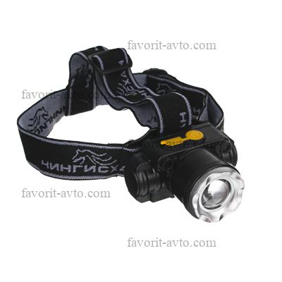 ЧИНГИСХАН Фонарь налобный светодиодный, 4 режима, пластик, 6х5,5см. 1/20 |