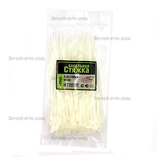 Пластиковый хомут Автостор НТ 3,6мм*150мм /БЕЛЫЙ/ цвет (100 шт.в упаковке). AVT3530. |