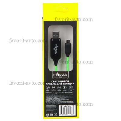 FORZA Кабель для зарядки micro USB, с LED подсветкой, 1м, 2.4А, покрытие TPE |