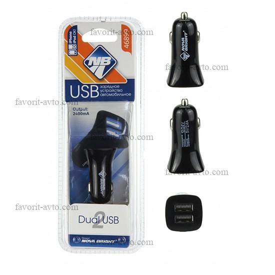 Зарядное устройство "Nova Bright" для моб. телефонов, 2 USB-порта, 12/24В. 1/25 |