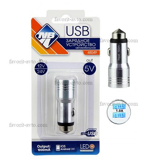 Зарядное устройство "Nova Bright" для моб.устройств, USB-порт, 1000мА, LED индикатор, 12/24В. 1/25/200 |