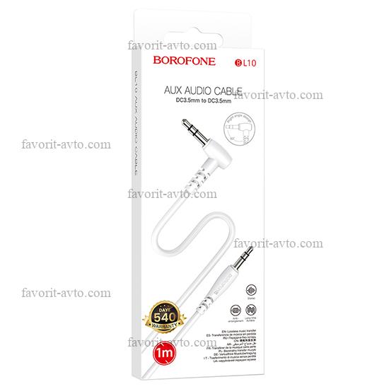 BOROFONE BL10 Аудиокабель AUX для подключения к автомагнитоле с разъемом 3.5 Jacke угл, 1м белый |