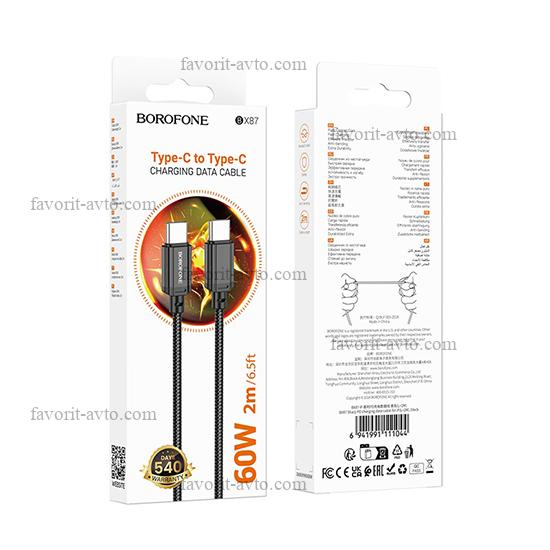 BOROFONE Кабель универ. Type-C - Type-C 2м, 3А, черный BX87 |
