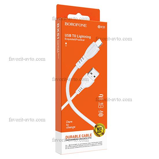 BOROFONE Кабель универ. lightning USB / Iphone 1м, 2,4А, белый BX51 |
