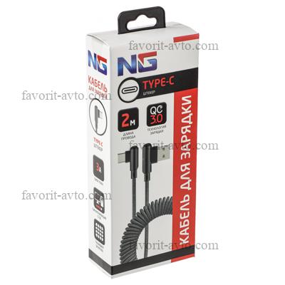 NG Кабель для зарядки Спираль Type-C, 2 м, 3A, быстрая зарядка QC3.0, тканевая оплётка |