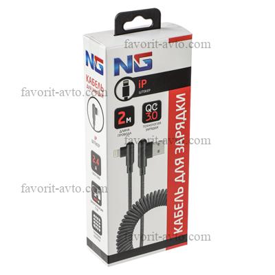 NG Кабель для зарядки Спираль iP, 2 м, 2.4А, быстрая зарядка , тканевая оплётка. 1/20шт |