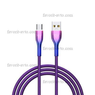 BY Кабель для зарядки Jam Type-C, 1м, Быстрая зарядка 3А, QC, PD 20W, тканевый, фиолетовый |