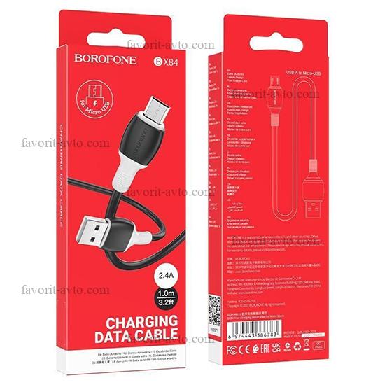 BOROFONE Кабель универ. micro USB /Android/ 1м, 2.4А, черный BX84 |