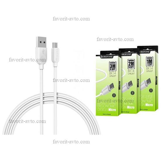 BOROFONE Кабель универ. micro USB /Android/ 1м, 2.4А, белый BX14 |