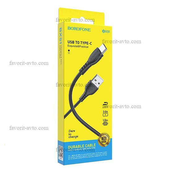 BOROFONE Кабель универ. USB Type-C 1м, 3А, черный BX51 |