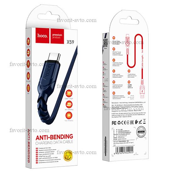 HOCO Кабель универ. USB Type-C 1м, 3А, нейлоновая оплетка, синий X59 |