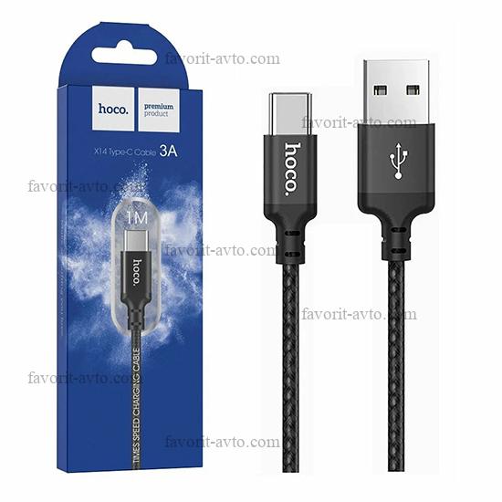 HOCO Кабель универ. USB Type-C 1м, 3А, нейлоновая оплетка, черный X14 |