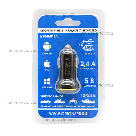 Зарядное устройство ВЫМПЕЛ 12В USB ЗУ (2 USB, 5V, 2.4 A). Арт.: 5003 |
