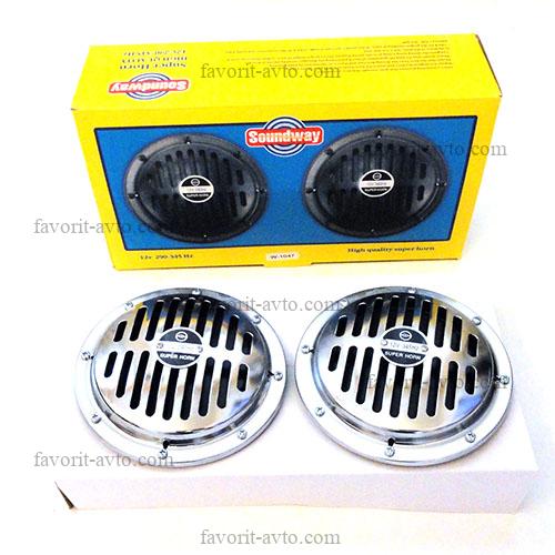 Сигнал звуковой электрический AutoHORN W-1047 Диск 12V /ХРОМ/ d-150 мм. Комп. 2 шт. 1/8 |