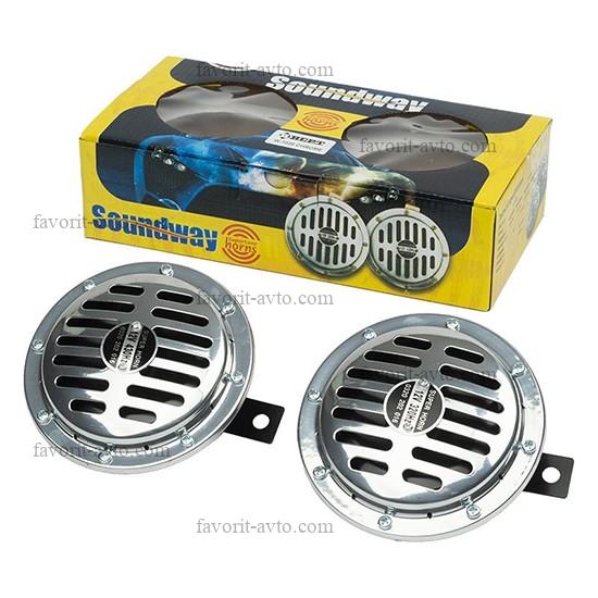 Сигнал звуковой электрический AutoHORN W-1038 Диск 120 мм /ХРОМ/ 12V. Комп. 2 шт. 1/20 |