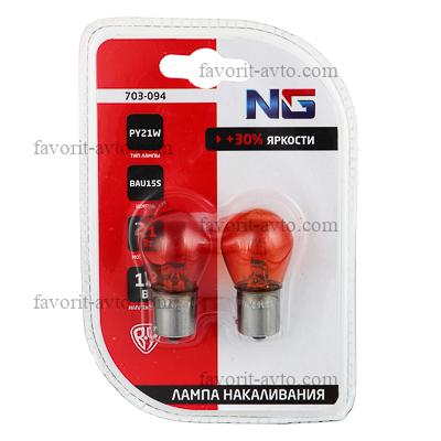 NG Лампа накаливания PY21W S25, 12В 21Вт, BAU15S, янтарь, 2шт/блистер (Original) |