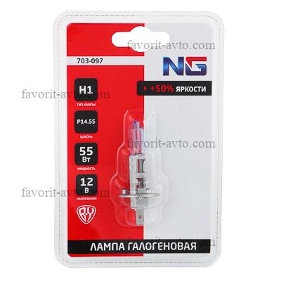 NG Лампа галогеновая H1, 12В 55Вт, Супер белый, P14.5S, 1шт/блистер. 1/10 |