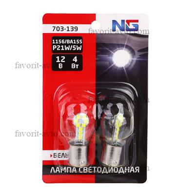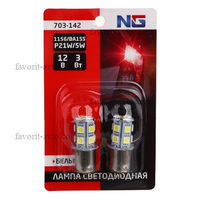 NG Лампа светодиодная T15, (13 SMD-5050, 1156, BA15S), 12В,белый, 2 шт., блистер |