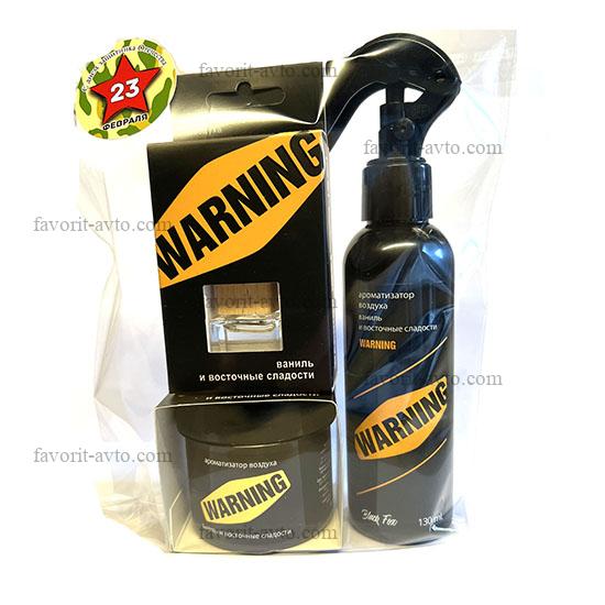 Набор подарочный ароматизаторов "WARNING SEXOHOLIC" с ароматом ванили (Банка, спрей, флакон). уп-ка прозрачный пакет. |
