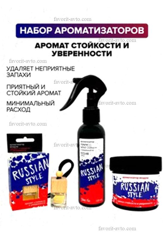Набор подарочный ароматизаторов "RUSSIAN STYLE"- Аромат стойкости и уверенности (Банка, спрей, флакон). уп-ка прозрачный пакет. |