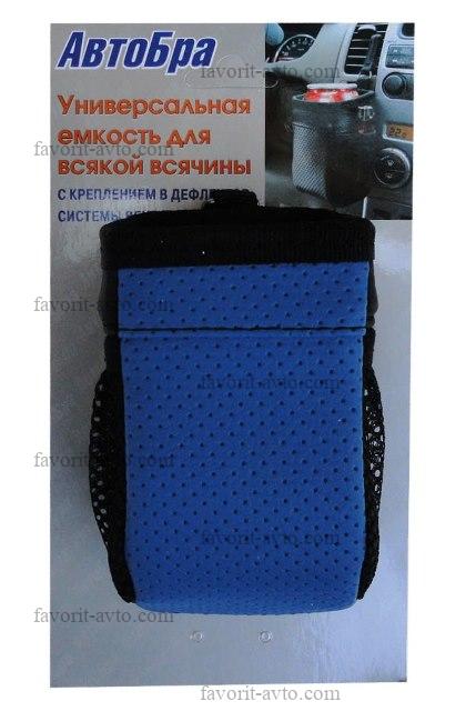 В пути! Унив. ёмкость АВТОБРА для всякой всячины /СИНИЙ/ из высококачественного КОЖЗАМА. Крепится в воздуховод вентиляции с помощью гибкого элемента. |
